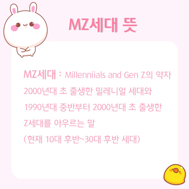 요약하자면 현재 20대와 30대층을 mz세대라고 볼 수 있다고 합니다.
