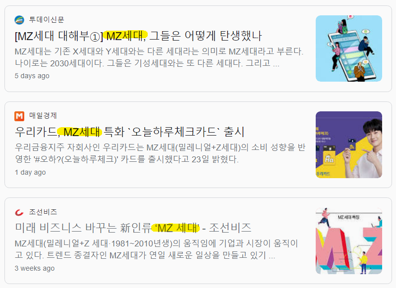 MZ세대는 90년대 중반에서 2000년대 중반에 태어난 이들로 온라인에 노련한 세대입니다 빠르고 유익한 것을 지향하면서 정보의 대다수을 온라인을 통해 확인하더라고요.